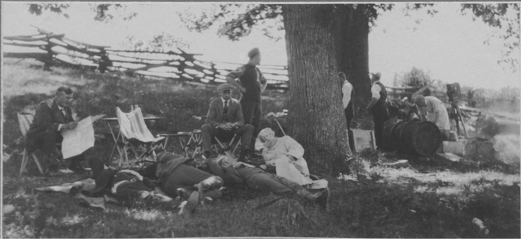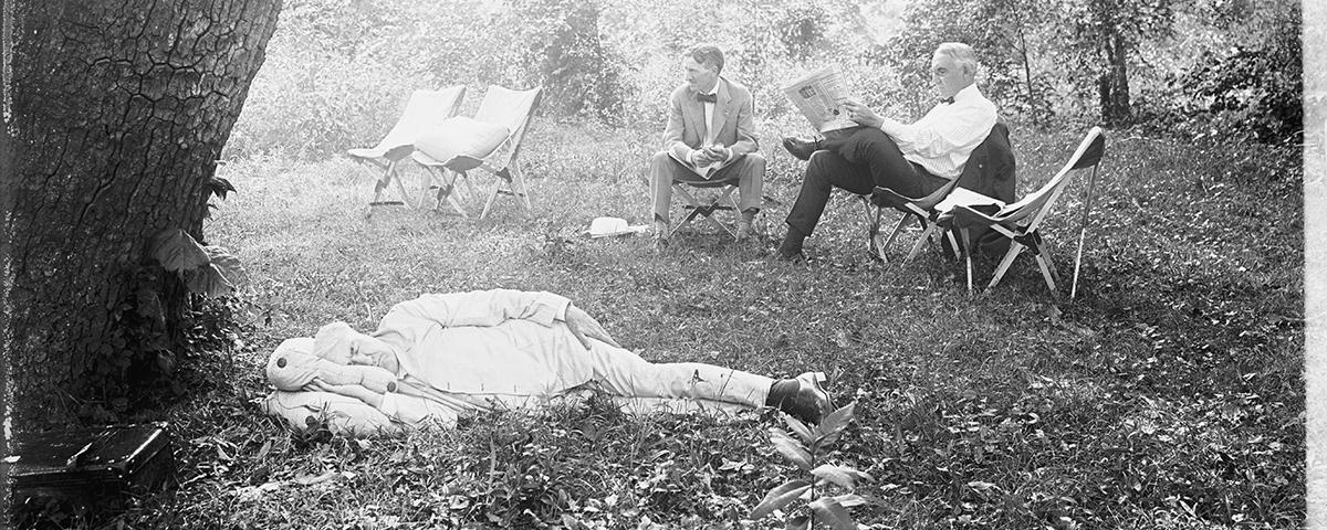 After lunch, the men enjoyed a casual afternoon. The President took a nap in his tent. Ford and Firestone competed in a wood-chopping contest. Edison laid down under an elm tree and took a nap.